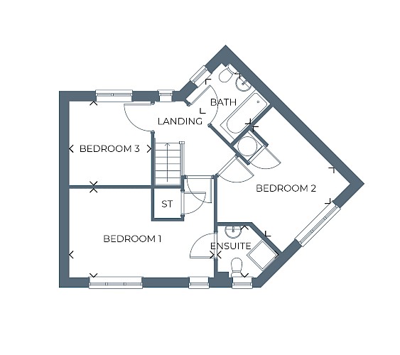 The 3-bedroom detached Larne offers spacious living, with a layout designed for ease and comfort. Its open-plan kitchen/dining area with French doors is the hub of the home, whilst the lounge provides space for a relaxing retreat. Upstairs, you'll find three generously sized bedrooms, including a master en-suite, alongside a contemporary family bathroom.